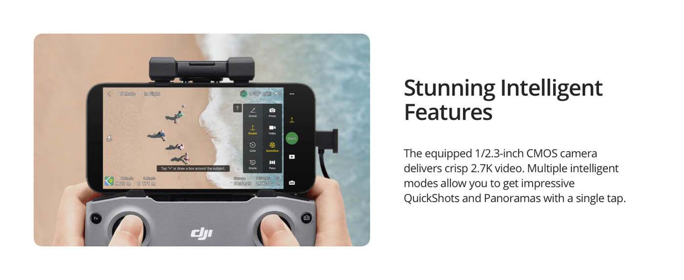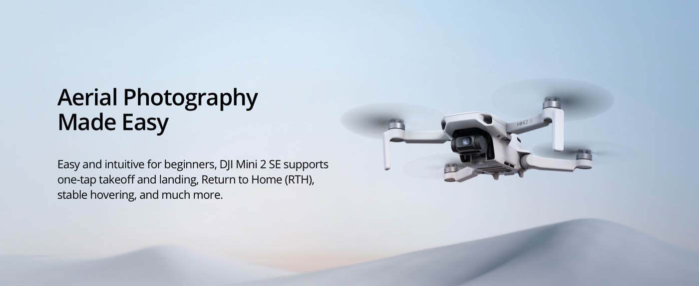With just a few taps, DJI Mini 2 SE automatically records and shoots professional-level videos to share directly on social media. Whether you are a beginner or a more experienced flyer, the DJI Fly app helps you to produce impressive results complete with soundtracks and filters.