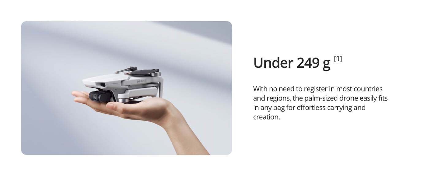 Just how light is DJI Mini 2 SE? At less than 249 g, it weighs about as much as an apple and fits in the palm of your hand. Compact and convenient, Mini 2 SE is your ideal travel companion, transforming how you capture your favorite moments.