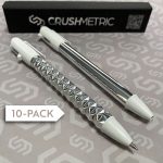 Retractable ballpoint pen with shape-changing body. Switches seamlessly between solid/crushed. Operates by switch that activates crushed grip and ink cartridge.